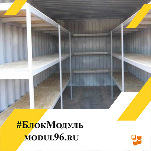 Блок-контейнер под склад: полки и стеллажи