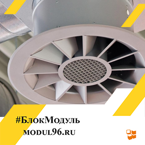 Вентиляторная установка также проектируется с резервированием. Для здания из 10 модулей суммарный расход может достигать 7200 м³/ч.